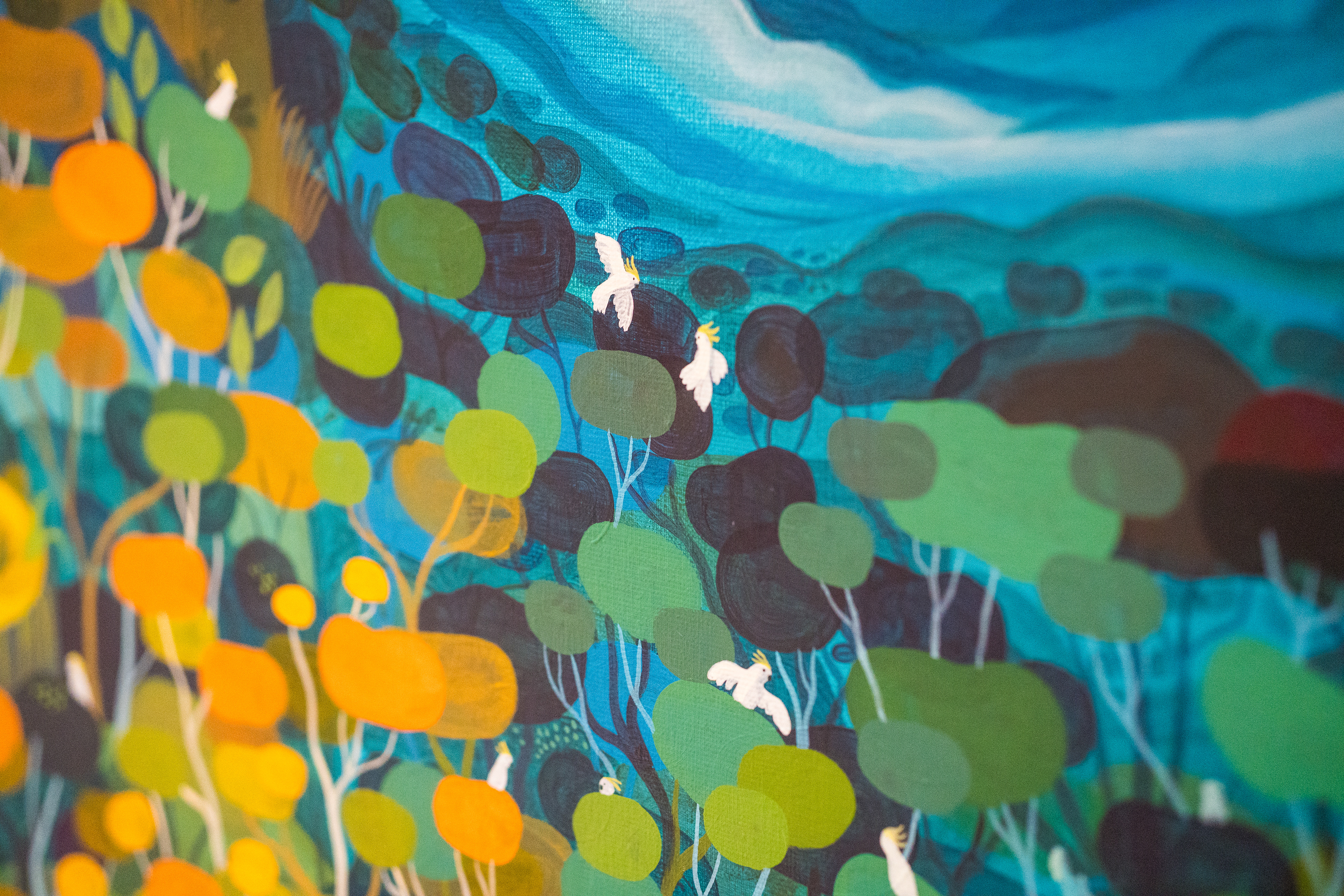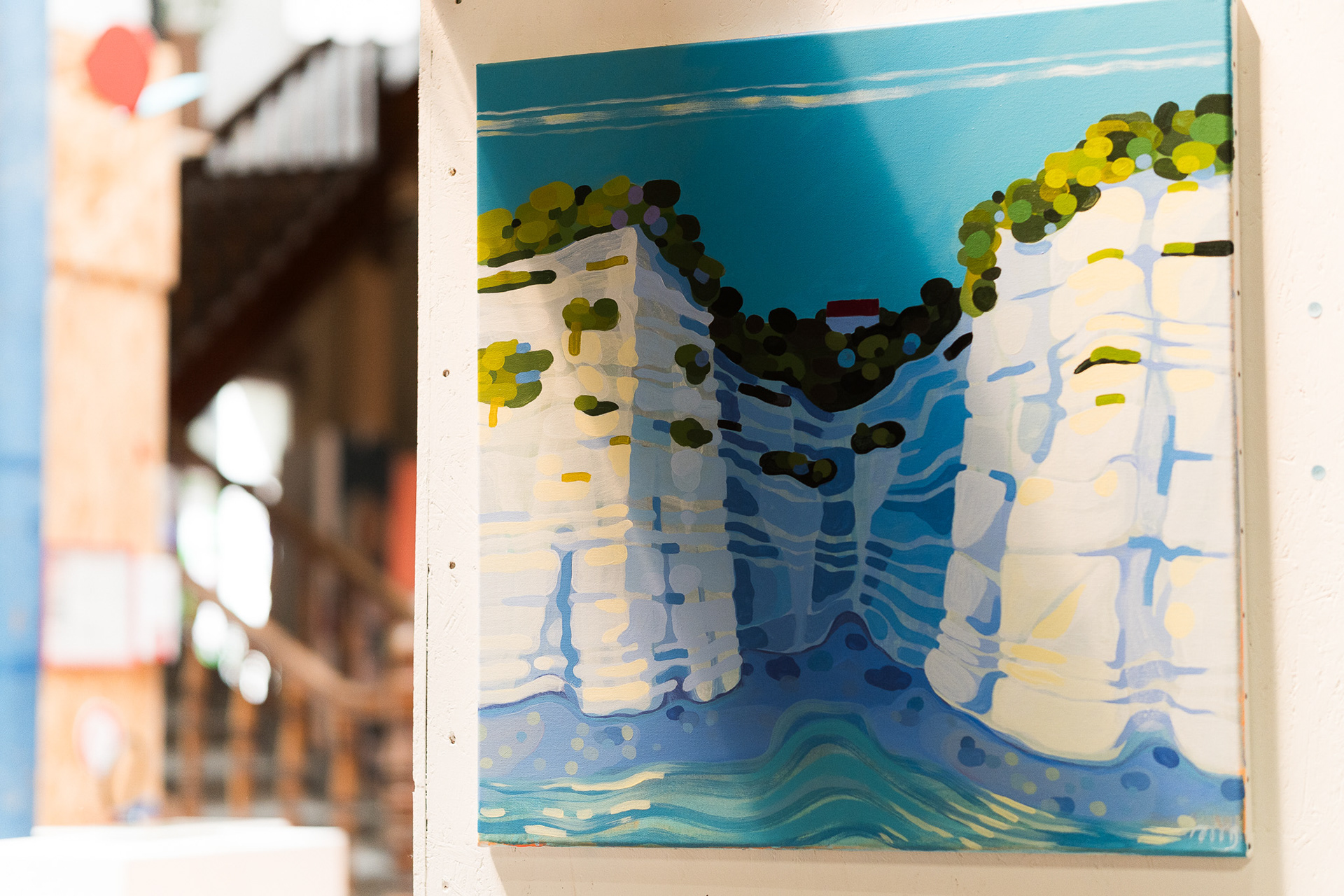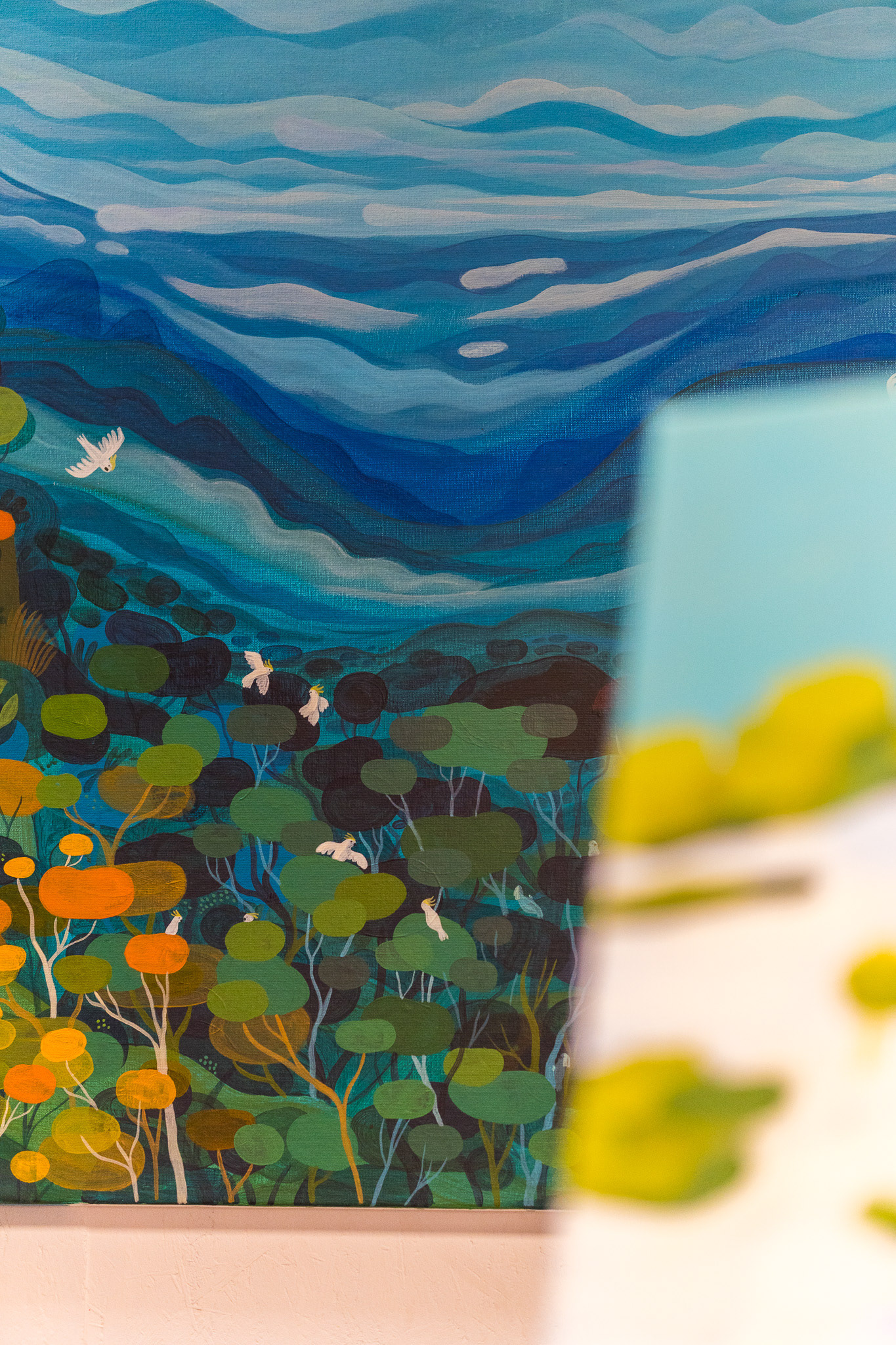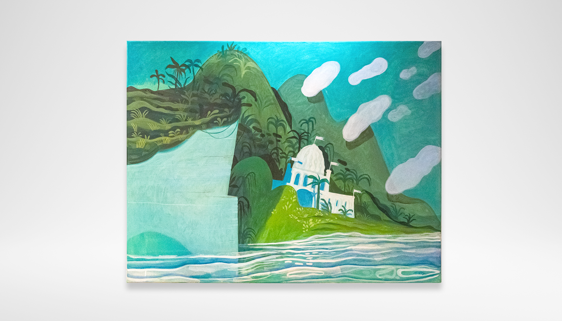 With Paysages fantasques, I wanted to immerse myself in larger formats and let colour guide my gestures. Acrylic, vivid and luminous, becomes the ground on which memory reshapes itself: fragments of real landscapes blend together to give rise to reinvented places.